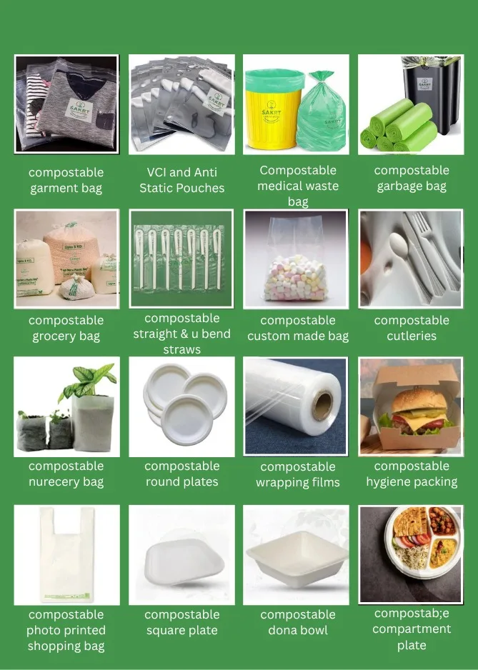 SAKRT is your trusted partner in Manufacturing & Distributing Govt certified compostable bags, compostable tablewares, compostable films and pouches for retailers and industrial enterprises.